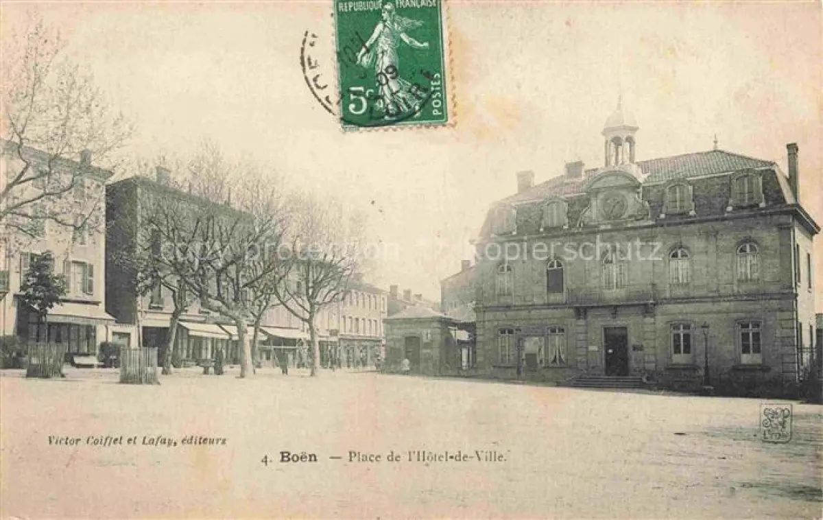 14082666 Boen-sur-Lignon Montbrison 42 Loire Place de l'Hôtel de Ville postalisch gelaufen Erhaltung siehe scans [FriedD77] carte postale Frie Katcode 11170042142019