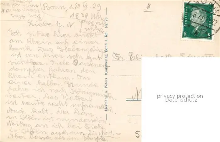 Bonn_Rhein Panorama Blick vom Muensterturm Bonn_Rhein postalisch gelaufen 1929 Erhaltung siehe scans [FriedD77] Frierer