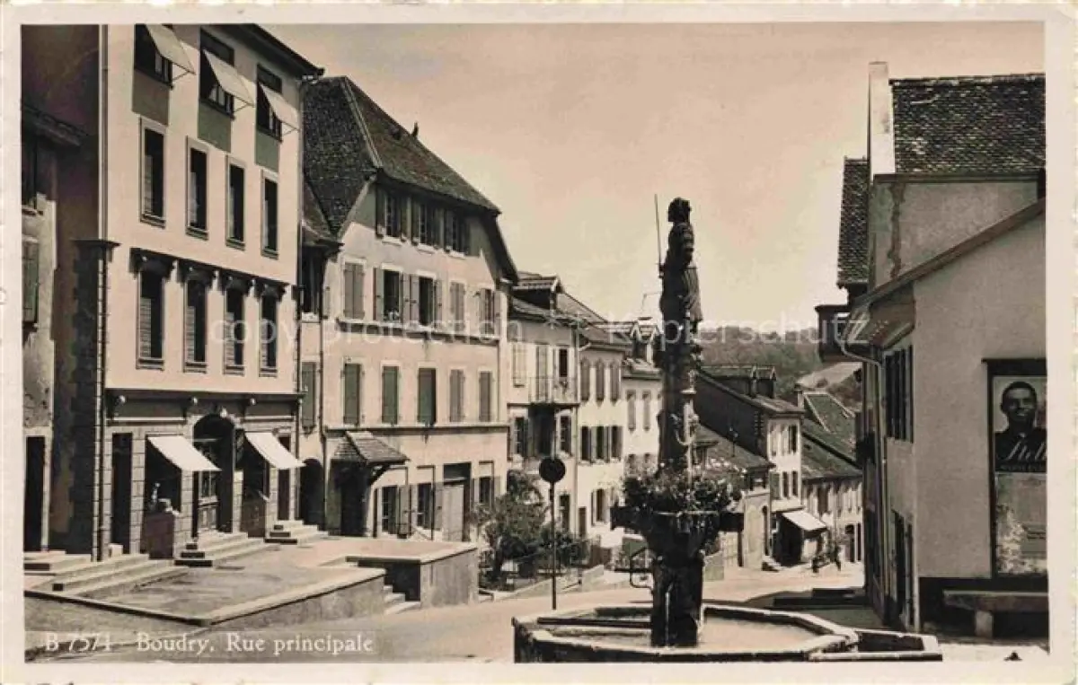 34144032 alte Postkarte Boudry NE Rue principale Fontaine postalisch gelaufen Erhaltung siehe scans [FriedD77] KatCode: 11470130405064