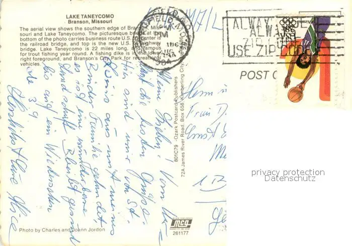 Branson_Missouri Lake Taneycomo Bridge aerial view postalisch gelaufen 1984 Erhaltung siehe scans [FriedD77] Frierer