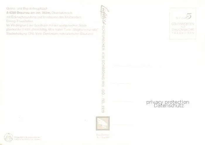 Braunau_Inn Fliegeraufnahme mit Enknachmuendung Innstausee Kraftwerk Ehring Frauenstein Stadtpfarrkiche Stephansmuenster Braunau Inn postalisch nicht gelaufen nach 1965 Erhaltung siehe scans [WerneD78] WernPID7