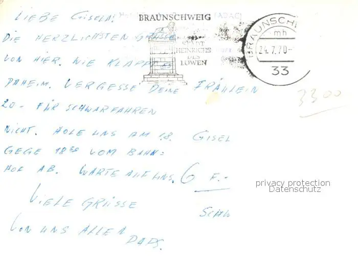 Braunschweig Gaststaette Gastraum Braunschweig postalisch gelaufen 1970 Erhaltung siehe scans [FriedD77] Frierer
