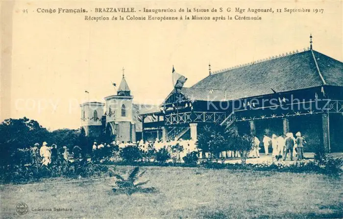 AK / Ansichtskarte Brazzaville Inauguration de la Statue de SG Mgr Augouard Reception de la Colonie Europeenne a la Mission apres la Ceremonie Brazzaville