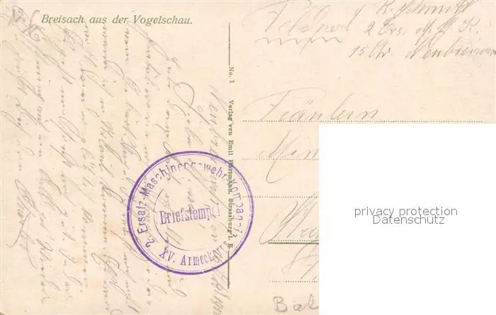 Breisach_Rhein Fliegeraufnahme Breisach Rhein postalisch gelaufen 1915 Feldpost - Stempel Erhaltung siehe scans [KathaD81] Feldpost - Stempel Kathoren