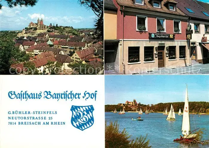 Breisach_Rhein Stadtpanorma mit Muenster Gasthaus Bayrischer Hof Segeln Breisach Rhein postalisch nicht gelaufen nach 1965 Werbekarte (keine Postkarte) Erhaltung siehe scans [FriedD77] Werbekarte (keine Postkarte) Frierer