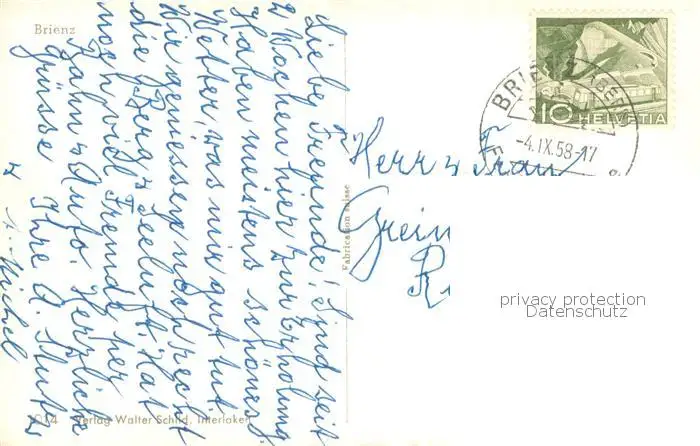 Brienz_Brienzersee Panorama Brienz Brienzersee postalisch gelaufen 1958 Erhaltung siehe scans [WerneD78] WernPID7