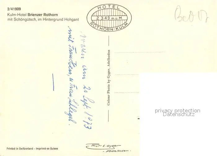 Brienzer_Rothorn_BE Kulm Hotel mit Schoenguetsch und Hohgant Brienzer_Rothorn_BE postalisch nicht gelaufen 1973 Erhaltung siehe scans [WerneD78] WernPID7