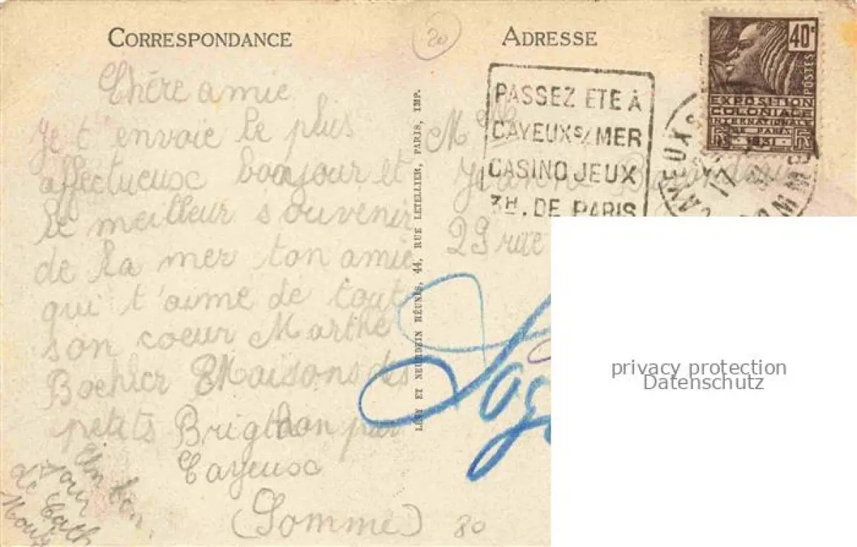 14115983 Brighton-Francais Brighton-sur-Mer Amiens 80 Somme La Colonie scolaire fondation Groult postalisch gelaufen Erhaltung siehe scans [FriedD77] alte Postkarte Frie Katcode 11170080280021