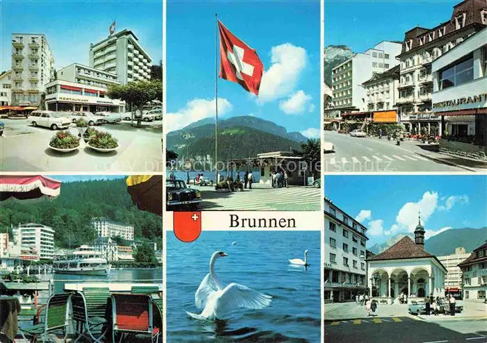 AK / Ansichtskarte Brunnen__SZ Teilansichten Ortspartien Markt Schwaene