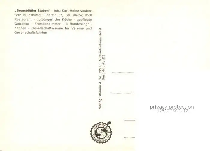 Brunsbuettel Brunsbuetteler Stuben Kegelbahnen Bar Gaststube Brunsbuettel postalisch nicht gelaufen nach 1965 Erhaltung siehe scans [FriedD77] Frierer