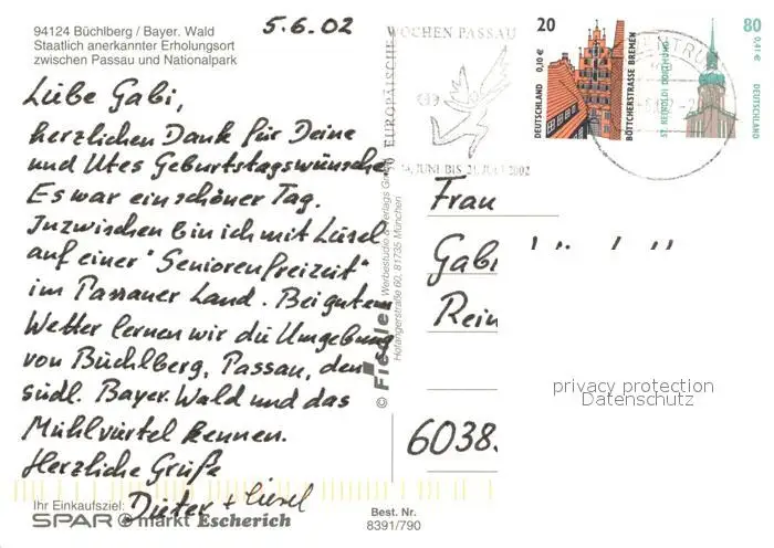 Buechlberg Landschaftspanorama Ortsmotiv mit Kirche Wandern Freibad Buechlberg postalisch gelaufen 2002 Erhaltung siehe scans [FriedD77] Frierer