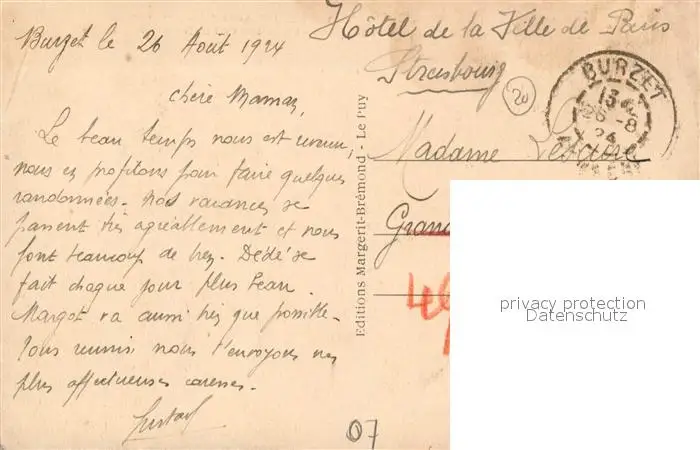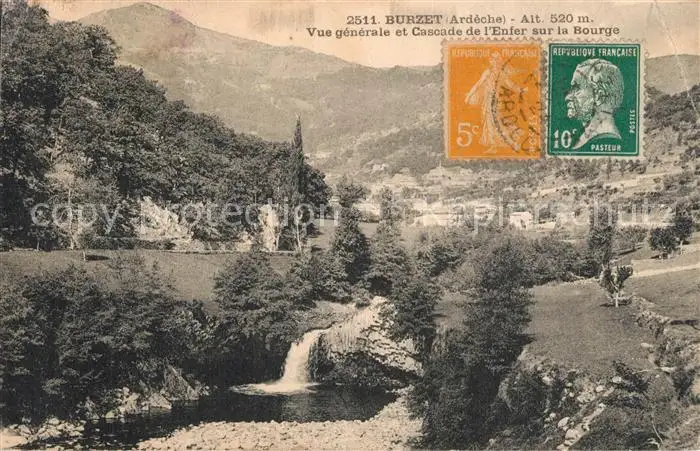 Burzet Vue generale et Cascade de l’Enfer sur la Bourge Burzet postalisch gelaufen 1924 Erhaltung siehe scans [WerneD78] WernPID7