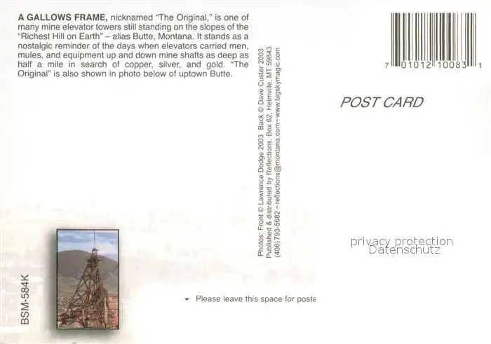 Butte_Montana A Gallows Frame Mine Elevator Tower postalisch nicht gelaufen 2003 Erhaltung siehe scans [FriedD77] Frierer