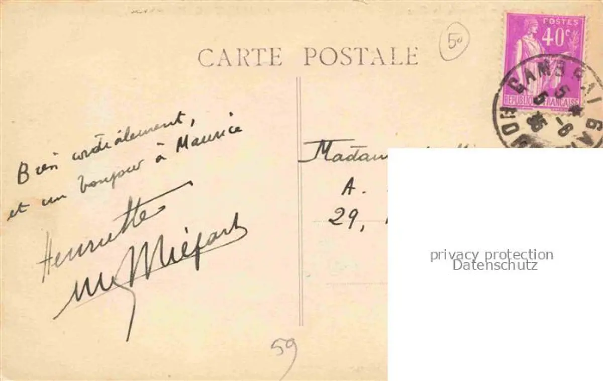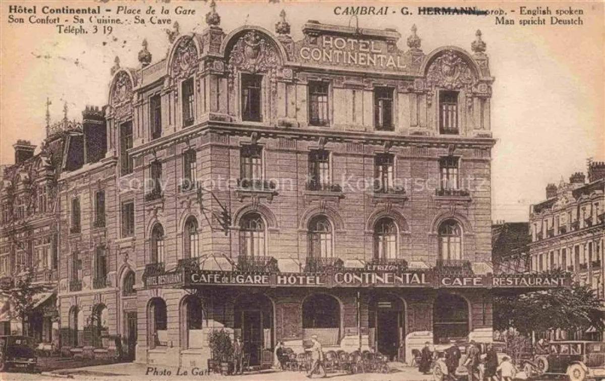 14116790 CAMBRAI 59 Nord Hôtel Continental Place de la Gare postalisch gelaufen Erhaltung siehe scans [FriedD77] carte postale Frie Katcode 11170059259122