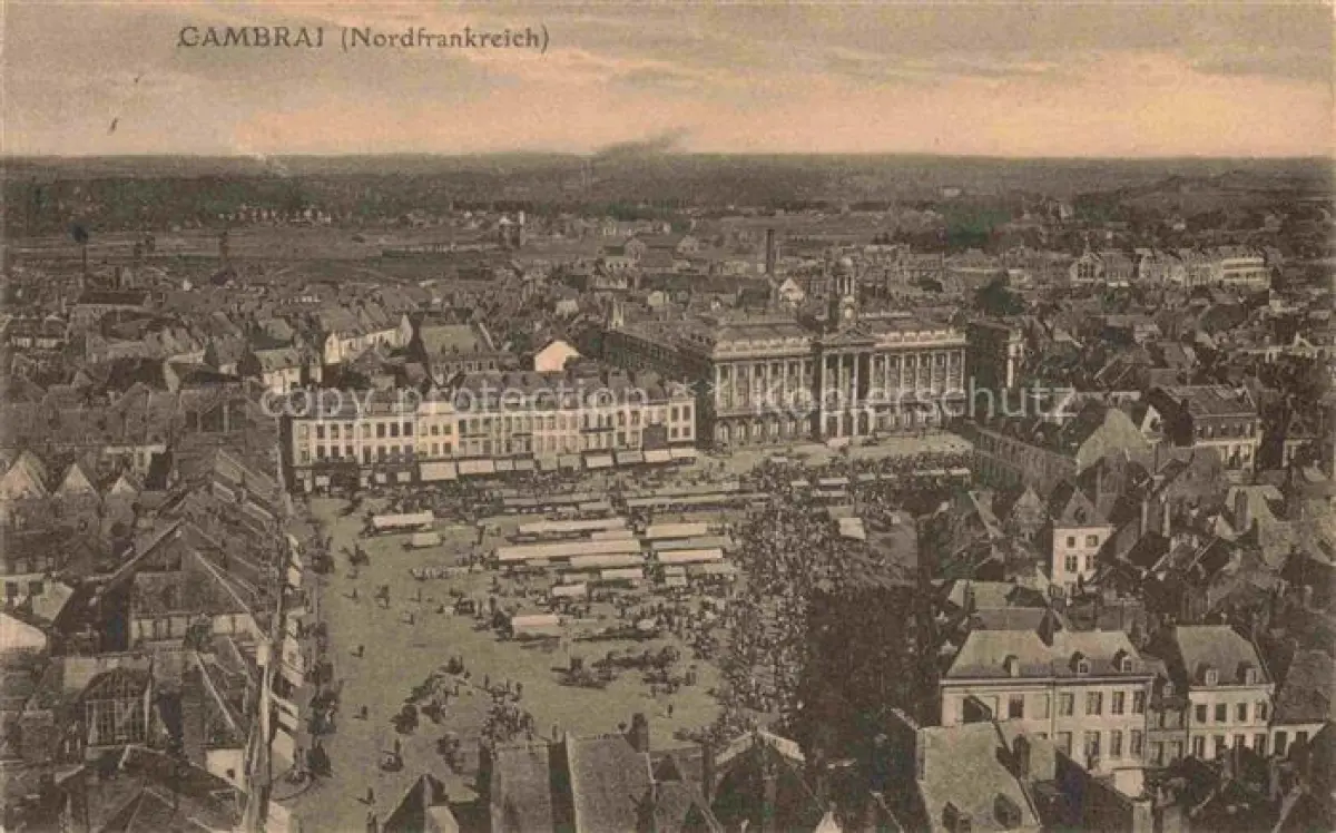 14093127 CAMBRAI 59 Nord Vue panoramique sur la ville vue aérienne postalisch gelaufen Feldpostexpedition (Stempel) Erhaltung siehe scans [FriedD77] Feldpostexpedition (Stempel) carte postale Frie Katcode 11170059259122