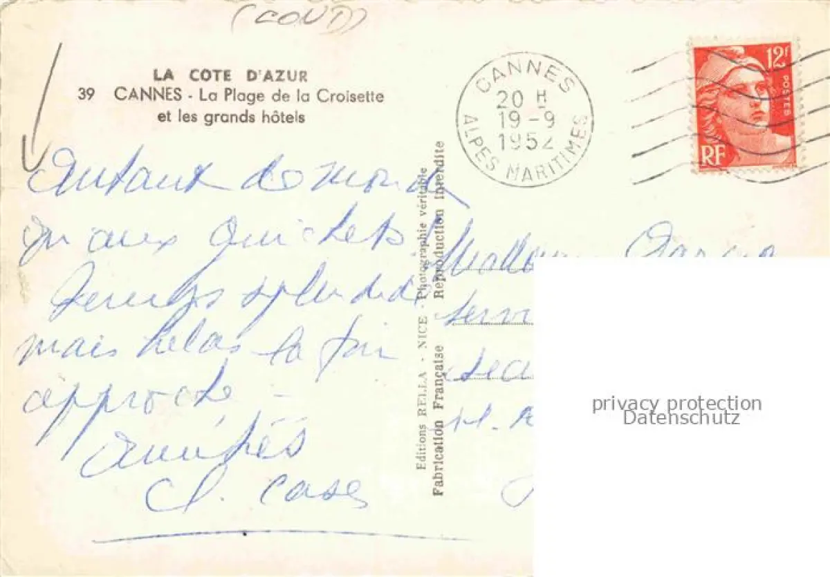 14102383 CANNES 06 Alpes-Maritimes La Plage de la Croisette et les grands hotels postalisch gelaufen Erhaltung siehe scans [WerneD78] carte postale Wern Katcode 11170006106029