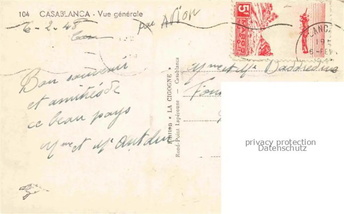 old postcard CASABLANCA Maroc Vue Generale le Port Hafen postalisch gelaufen Fliegeraufnahme Erhaltung siehe scans [SanaeD93]