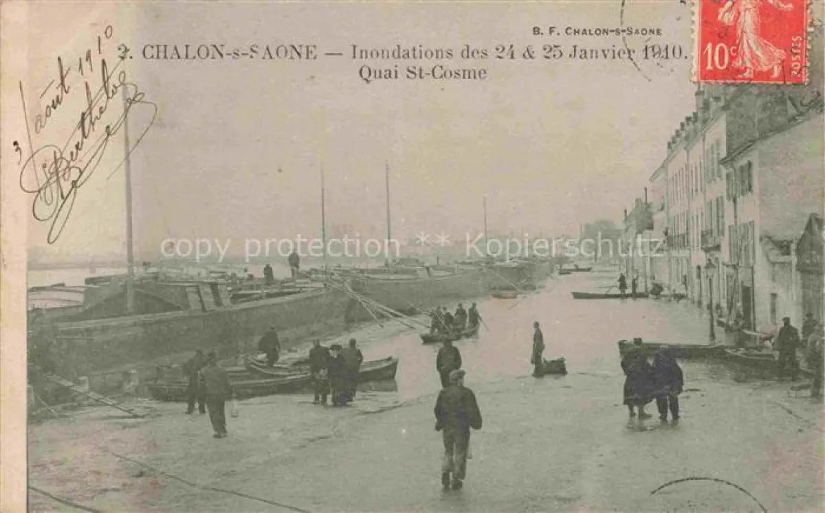 carte postale CHALON-SUR-SAONE 71 Saone-et-Loire Inondations Janvier 1910 Quai St. Cosme postalisch gelaufen Erhaltung siehe scans [FriedD77]