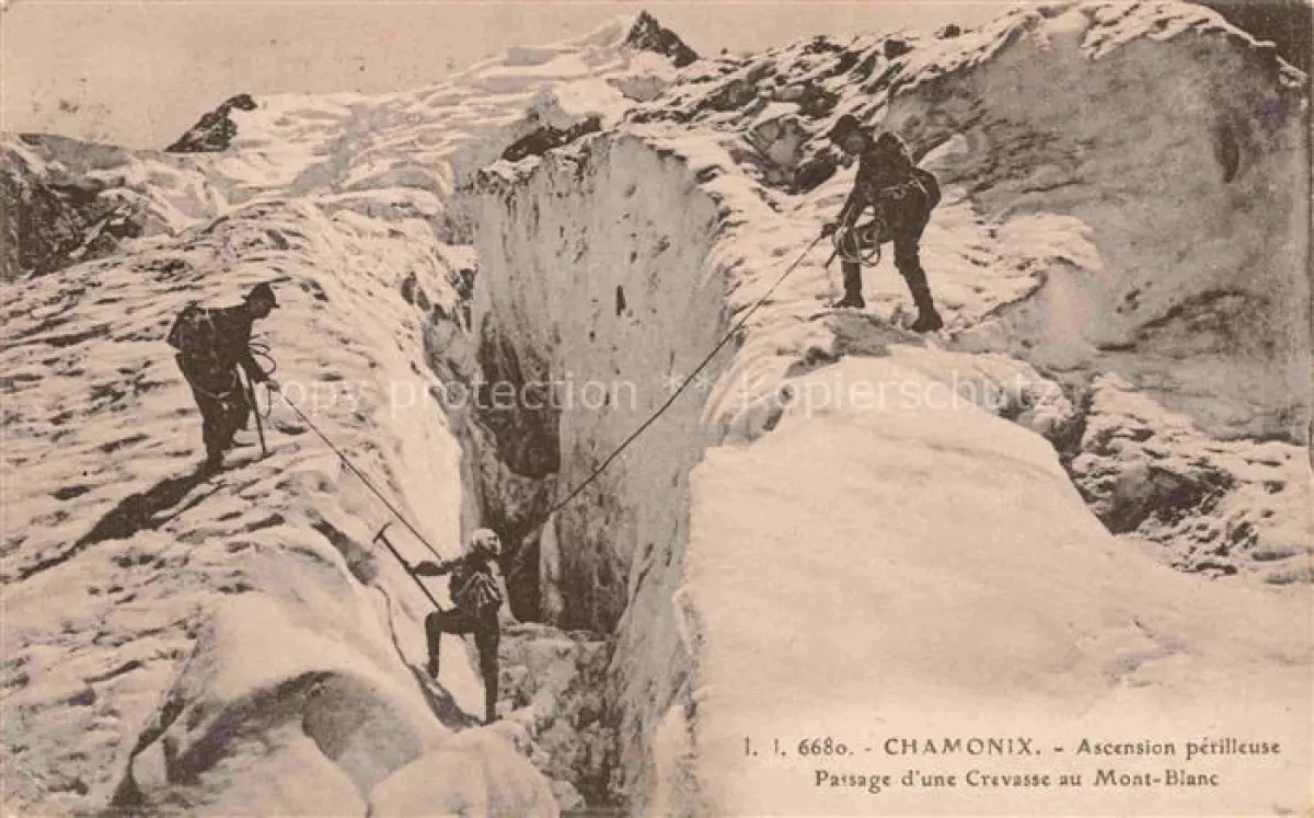 14118188 CHAMONIX BONNEVILLE 74 Haute-Savoie Ascension perilleuse Passage Grevasse MOnt Blanc postalisch gelaufen Erhaltung siehe scans [IrynaD87] carte postale Iryn Katcode 11170074274056