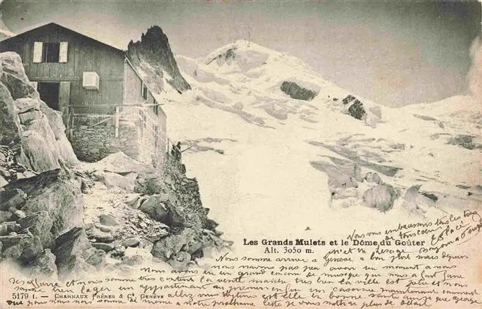 CHAMONIX_74_Haute-Savoie Les Grands Mulets et le Dôme du Goûter Berghaus Alpen Gletscher postalisch gelaufen 1902 Erhaltung siehe scans [FriedD77] Frierer