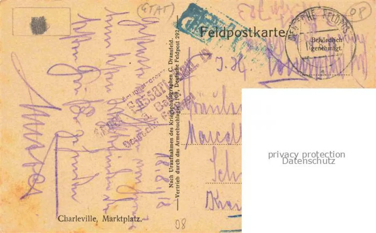 14106791 CHARLEVILLE -MEZIERES 08 Ardennes Marktplatz postalisch gelaufen Feldpost - Stempel Erhaltung siehe scans [WerneD78] Feldpost - Stempel carte postale Wern Katcode 11170008108105