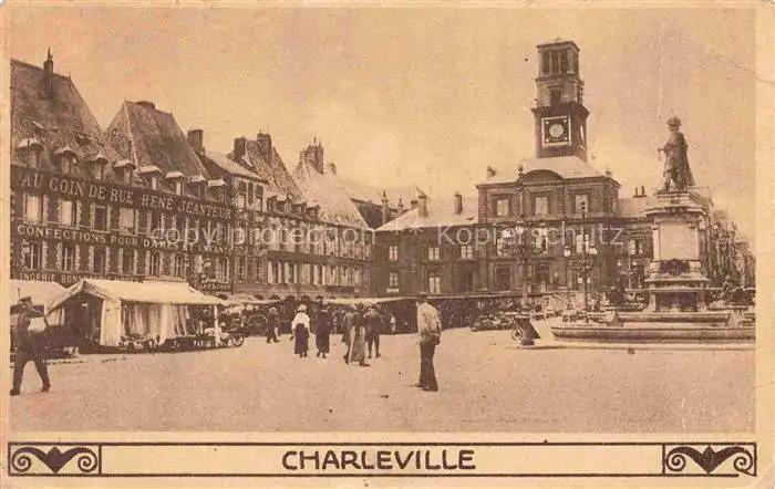 carte postale CHARLEVILLE -MEZIERES 08 Ardennes Marktplatz Denkmal postalisch gelaufen Feldpost - Stempel Erhaltung siehe scans [FriedD77]