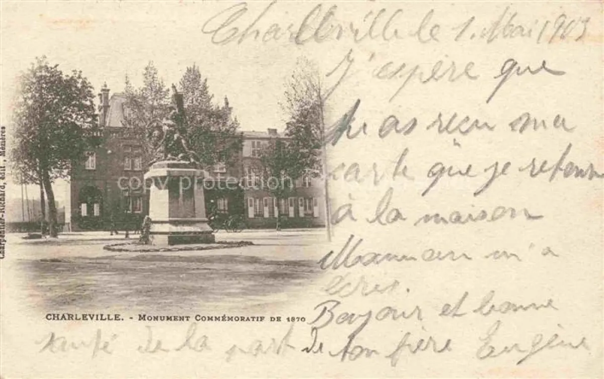 carte postale CHARLEVILLE -MEZIERES 08 Ardennes Monument Commémoratif de 1870 postalisch gelaufen Erhaltung siehe scans [FriedD77]