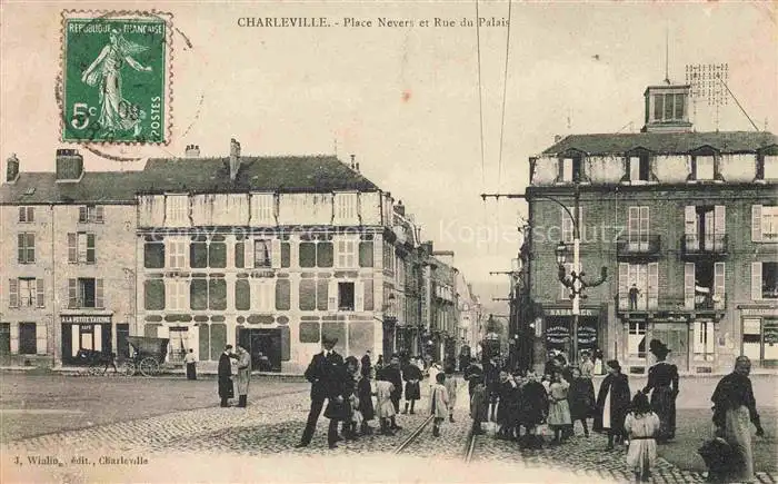 carte postale CHARLEVILLE -MEZIERES 08 Ardennes Place Nevers et Rue du Palais postalisch gelaufen Erhaltung siehe scans [FriedD77]