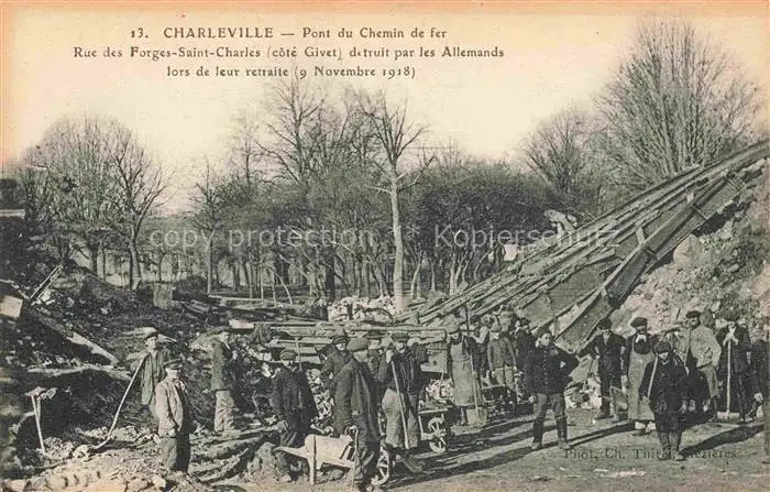AK / Ansichtskarte CHARLEVILLE -MEZIERES 08 Ardennes Pont du Chemin de fer Rue des Forges Saint Charles detruit par les Allemands Nov 1918
