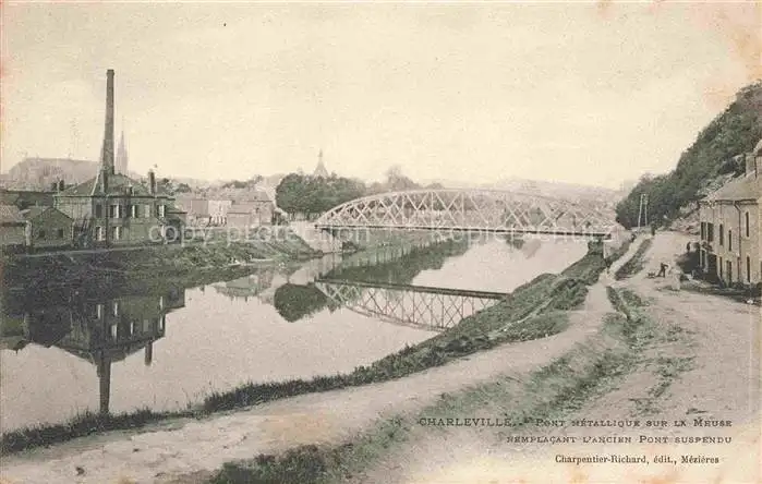 AK / Ansichtskarte CHARLEVILLE -MEZIERES 08 Ardennes Pont métallique sur la Meuse remplacant l'ancien pont suspendu