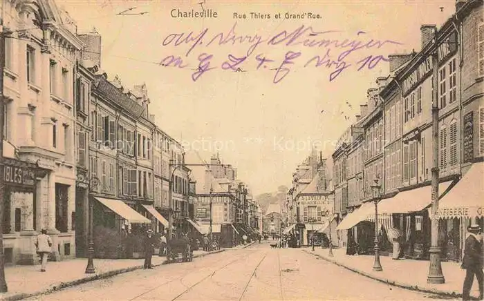 carte postale CHARLEVILLE -MEZIERES 08 Ardennes Rue Thiers et Grand Rue Feldpost postalisch gelaufen Erhaltung siehe scans [WerneD78]