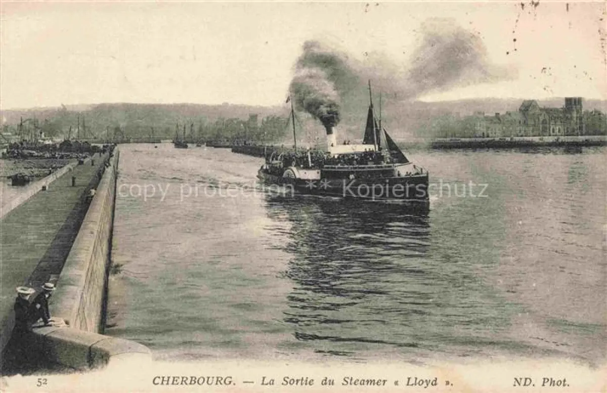 14118963 CHERBOURG-Octeville 50 Manche La Sortie du Steamer Lloyd postalisch gelaufen Erhaltung siehe scans [FriedD77] carte postale Frie Katcode 11170050250129