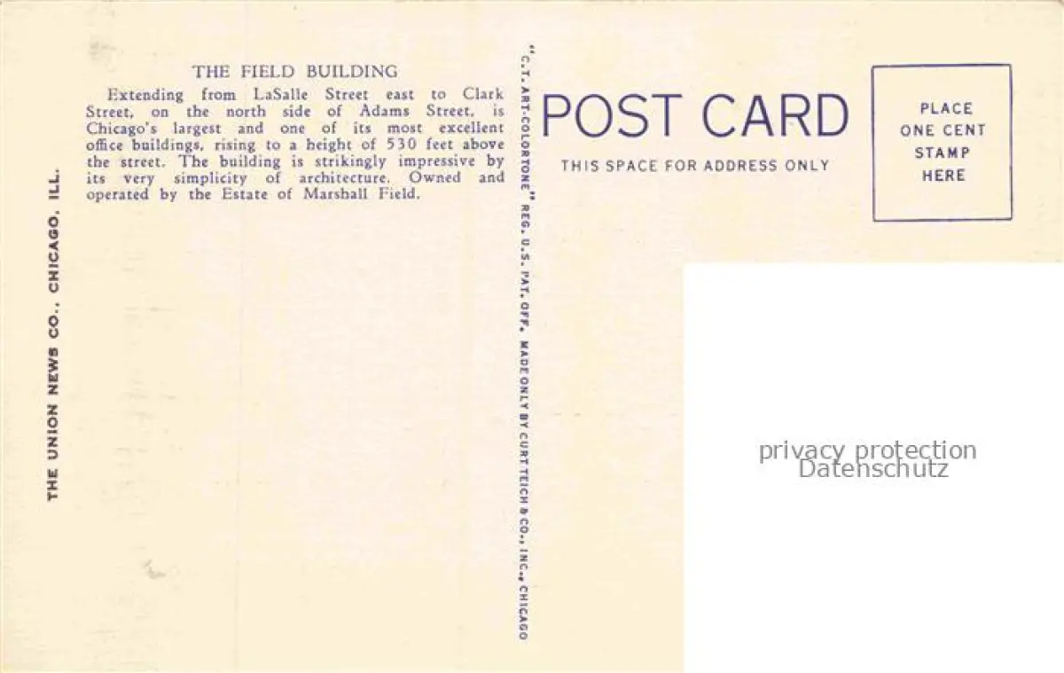 CHICAGO Illinois USA Field Building Illustration postalisch nicht gelaufen Erhaltung siehe scans [FriedD77] Frie Katcode 14140150000000