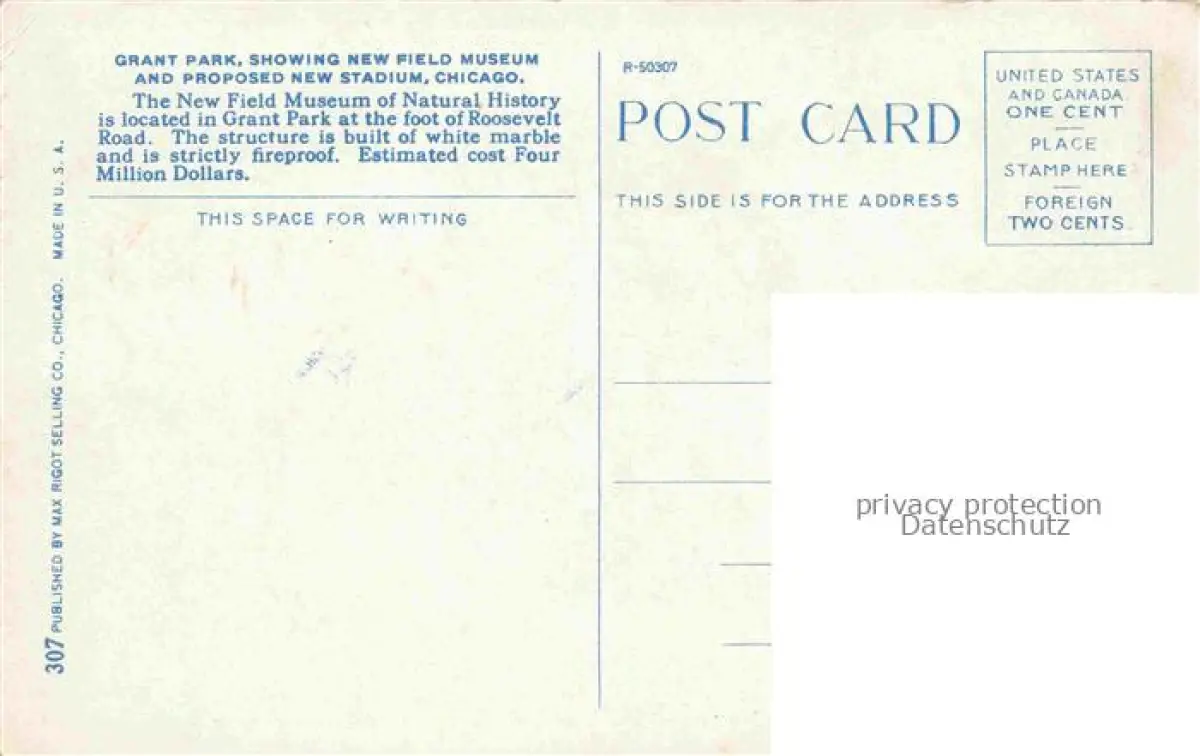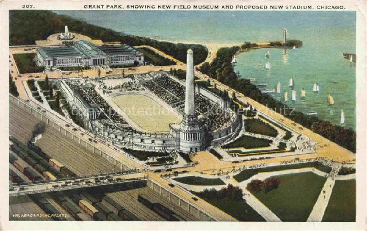 14117025 CHICAGO Illinois USA Grant Park showing Field Museum and proposed New Stadium Illustration postalisch nicht gelaufen Erhaltung siehe scans [FriedD77] Frie Katcode 14140150000000