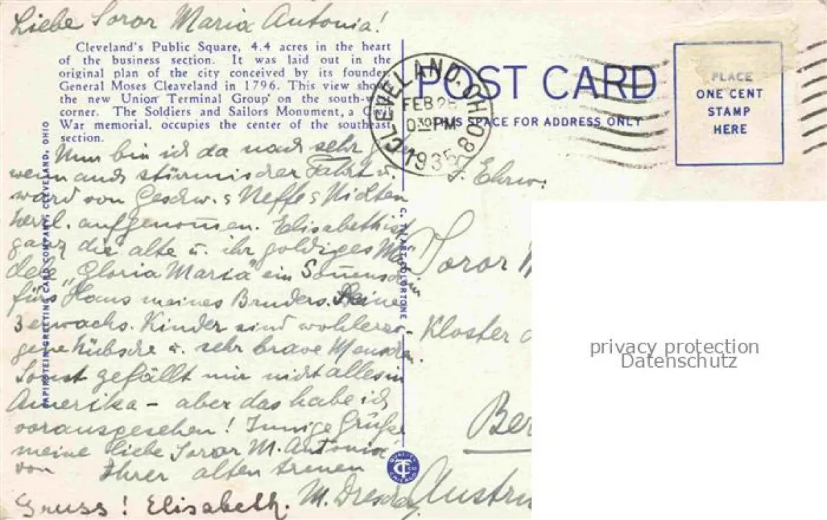 old postcard CLEVELAND Ohio USA Public Square and Union Terminal Tower Illustration postalisch gelaufen Erhaltung siehe scans [FriedD77]