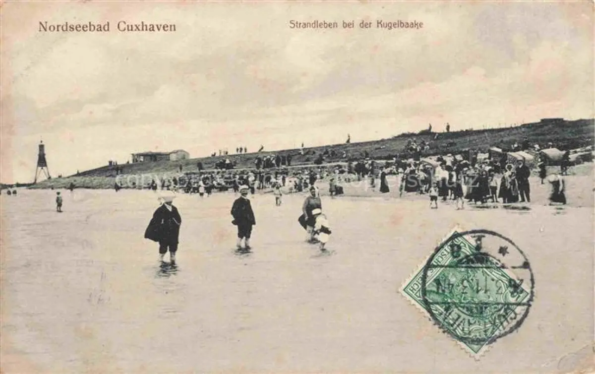 alte Postkarte CUXHAVEN Nordseebad Strandleben bei der Kugelbaake postalisch gelaufen Erhaltung siehe scans [FriedD77]