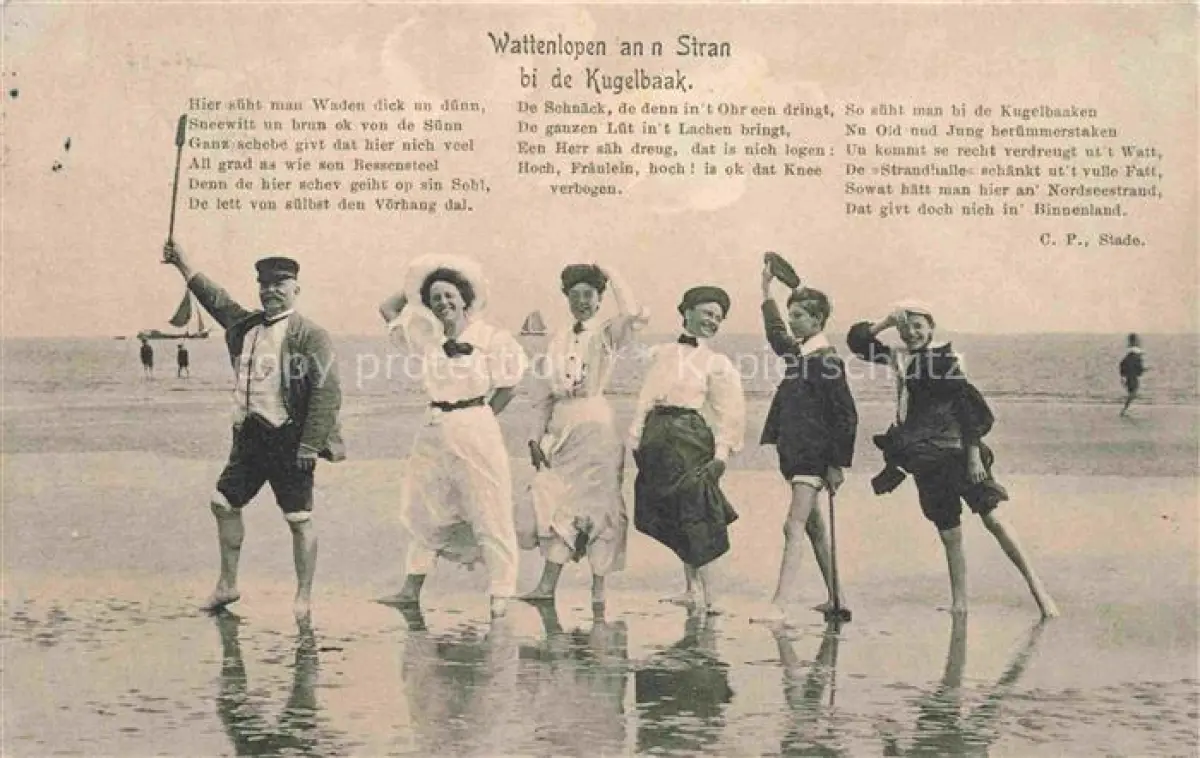 alte Postkarte CUXHAVEN Nordseebad Wattenlopen an n Stran bi de Kugelbaak postalisch gelaufen Erhaltung siehe scans [FriedD77]
