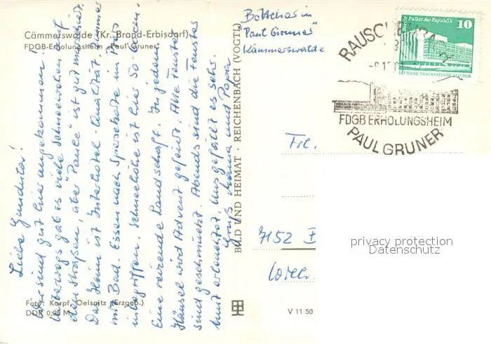 Caemmerswalde FDGB Erholungsheim Paul Gruner Caemmerswalde postalisch gelaufen nach 1965 Erhaltung siehe scans [FriedD77] Frierer