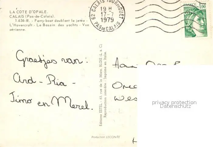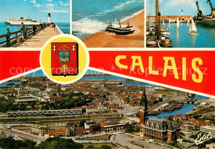 Calais_62 Ferry boat doublant la jetée l'Hovercraft Bassin des yachts vue aérienne postalisch gelaufen 1979 Erhaltung siehe scans [FriedD77] Frierer