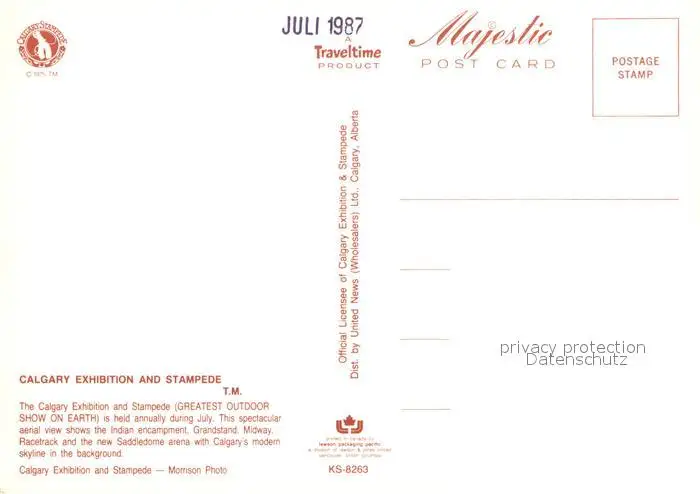 Calgary Exhibition and Stampede Outdoor Show aerial view Calgary postalisch nicht gelaufen 1987 Erhaltung siehe scans [FriedD77] Frierer