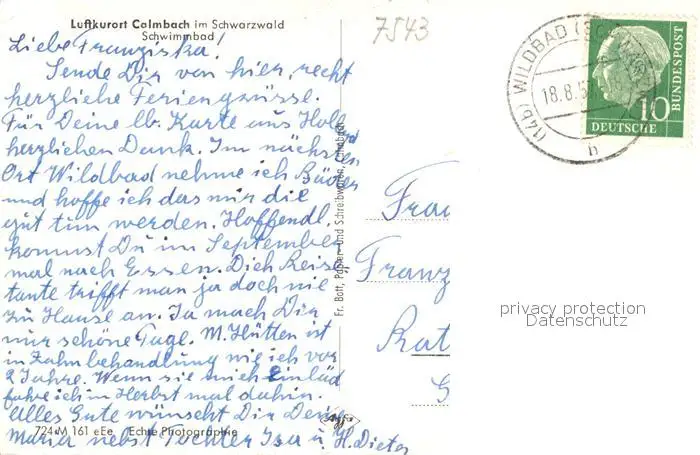 Calmbach Enz Kategorie Alte Ansichtskarten Postkarten bx79399 Calmbach_Enz Schwimmbad Calmbach Enz postalisch gelaufen 1957 Erhaltung siehe scans [WerneD78]