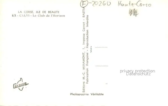 Calvi LeClub de l'Horizon Calvi postalisch nicht gelaufen nach 1965 Erhaltung siehe scans [WerneD78] WernPID7