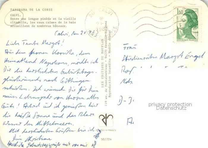 Calvi Panorama d. Insel Calvi postalisch gelaufen 1983 Erhaltung siehe scans [LiesaD40] LiesID40