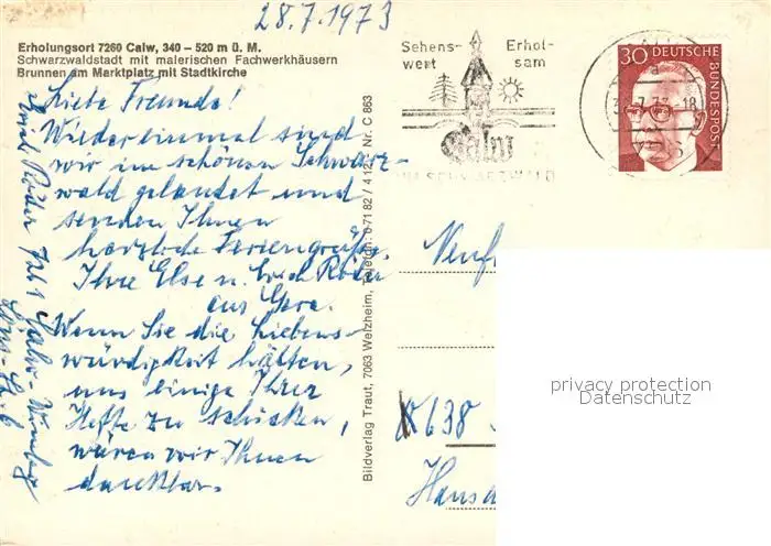 Calw Marktplatz Stadtkirche Calw postalisch gelaufen 1973 Erhaltung siehe scans [NatalD47] NataID47