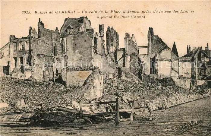 AK / Ansichtskarte Cambrai Ruines Un coin de la Place d’Armes prise de la rue des Liniers Cambrai