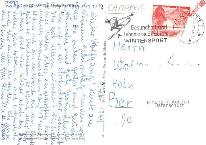alte Postkarte Campfer St Moritz GR Talvo postalisch gelaufen Erhaltung siehe scans [WerneD78]