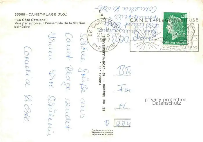 Canet-Plage_66_Pyrenees-Orientales Vue par avion sur l'ensemble de la Station balneaire postalisch gelaufen 1972 Erhaltung siehe scans [FriedD77] Frierer