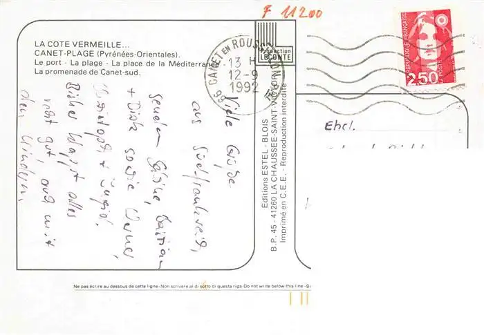 Canet_-Plage_66_Pyrenees-Orientales Le port la plage Place de la Méditerrannée Promenade de Canet-sud postalisch gelaufen 1992 Erhaltung siehe scans [FriedD77] Frierer