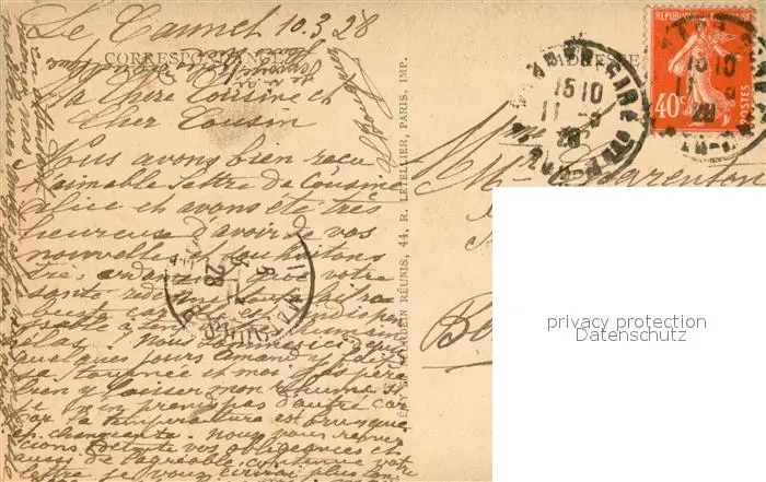 Cannes_06 Le Mont Chevalier vue de la Croisette postalisch gelaufen 1928 Erhaltung siehe scans [WerneD78] WernPID7