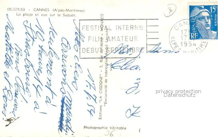 Cannes_Alpes-Maritimes Plage vue sur le Suquet Côte d'Azur Cannes Alpes-Maritimes postalisch gelaufen 1954 Erhaltung siehe scans [FriedD77] Frierer